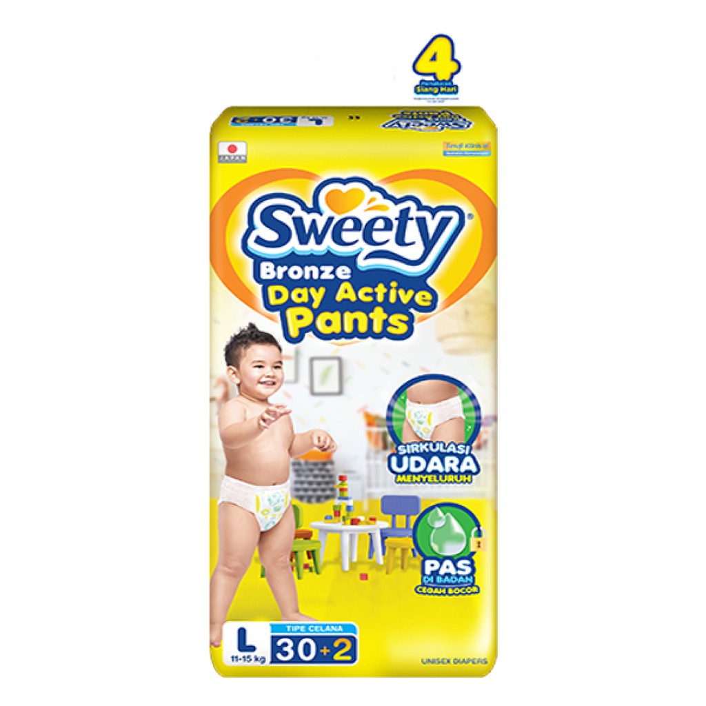 Meski masih lebih bagus drpd mamy poko. Popok sweety yang satu ini miliki teknologi permukaan berbentuk 3d diamond sehingga berdaya serap yang cepat. Anak tidak nyaman menggunakan diapers? Pampers sweety bronze pants day active murah lembut dan gak bocor ukuran . Ini membuat popok bebas bocor .